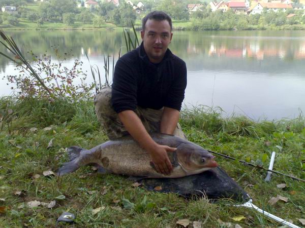 Hier ein schöner Marmorkarpfen mit einer Länge von 101cm. Er wollte sich einen 15cm Grossen Gummifisch einverleiben . Das Gewicht ist leider unbekannt. Gefangen in Seebar am 28.09.06